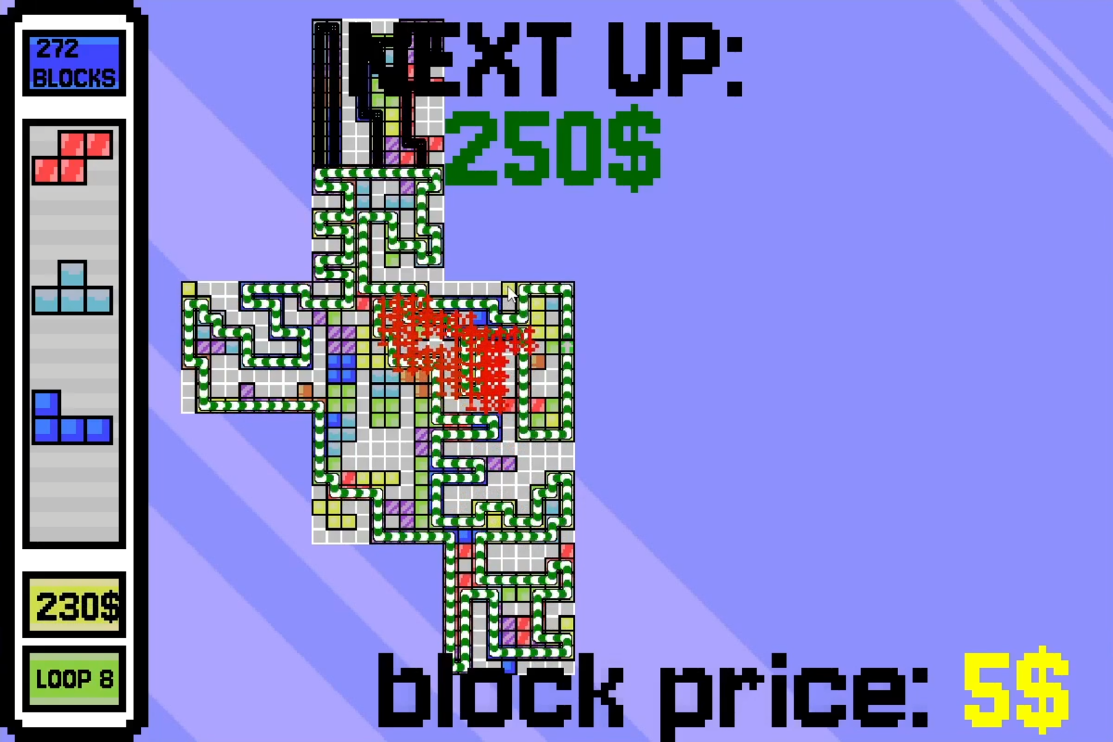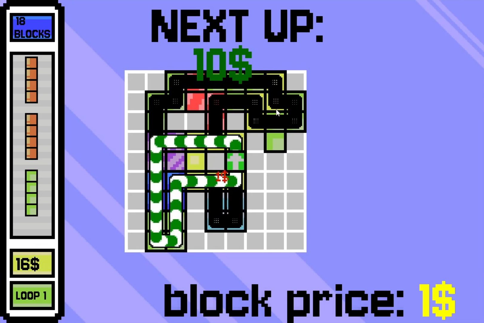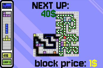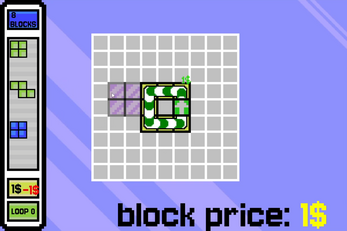 Each blocks making up the LOOP will give you 1$. Click a tetromino in the left UI to buy it for the price displayed on the bottom of the screen, and click on the grid to place it.